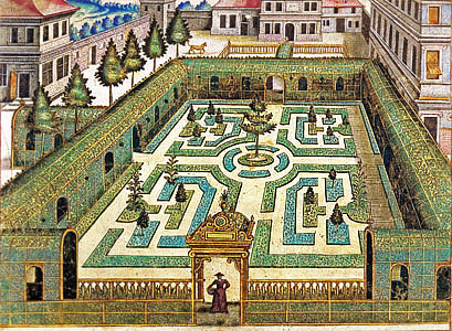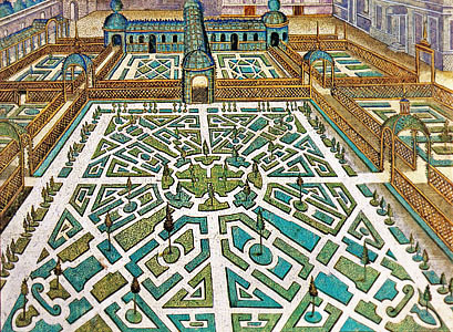streng geometrisch gestalteten Ornamentbeeten. Diese idealen, in sich symmetrischen