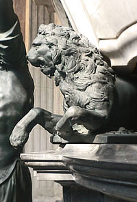 auch des Sarkophags ist massiv und die Löwen verdecken die tragenden